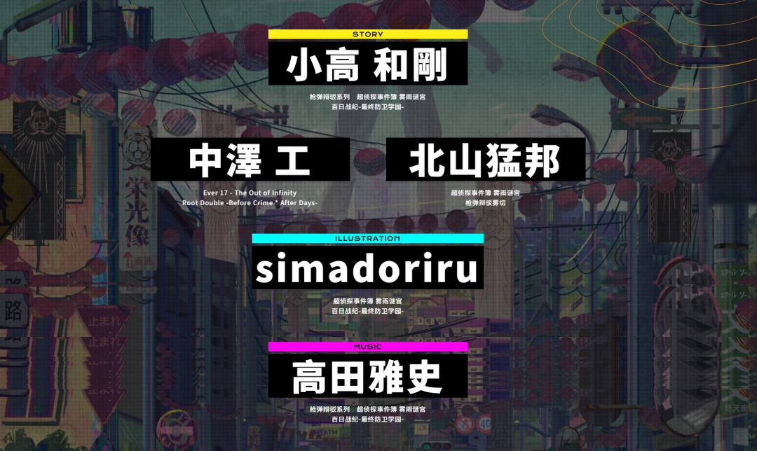 其实就制作而言,两款作品在很多地方都有一种一脉相承的味道。《终天教团》的制作团队Tookyo Games中有很多是之前参与《弹丸论破》的成员,除了负责企划原案、剧本构成的小高和刚外,你同样可以看见很多熟悉的面孔:比如《弹丸论破》系列的御用音乐制作人高田雅史;曾经合作构思过《新弹丸论破 V3》、撰写《弹丸论破雾切》小说的北山猛邦。