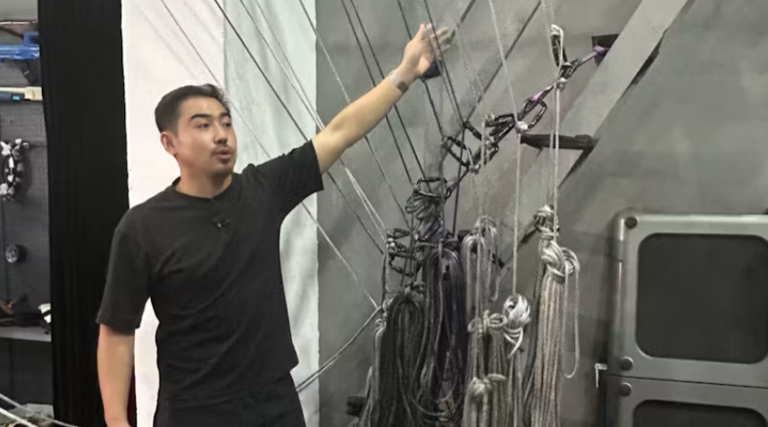 为了做到这一点,演员们会穿上各种不同的安全吊带或支撑装置,这些装置会在多个点上连接到滑轮系统,以便有效分散重量。多名团队成员需要与武术演员密切配合,同时操作滑轮系统,完成动作编排。正如你所想,有时即使只是捕捉武器的一个细微动作,也需要多次拍摄。相比之下,我们在空中动作上显得笨拙无比,而专业演员则能轻松完成。我尤其对在滑轮系统上做空翻心存顾虑——毕竟就在几个小时前,我们才享用了一顿丰盛的“功夫大师”午餐。