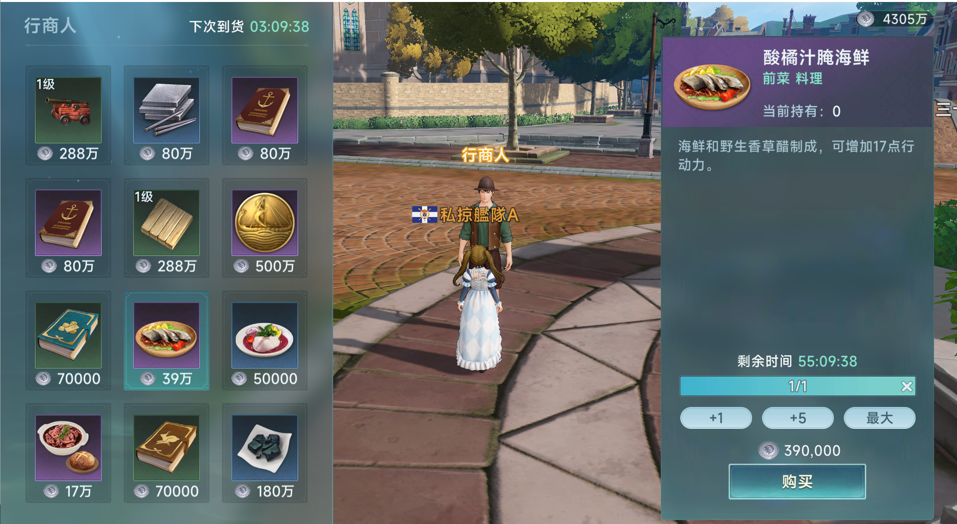 行商人那里则是有着各种各样可以用海币购买的商品,从经验书到料理,到各种道具和材料应有尽有,如果对海币不是很看重的玩家,完全可以用海币交换金币,只是有的道具可能比例不尽人意,但是这是不用花费体力就能得到的金币,积少成多也不错哦。