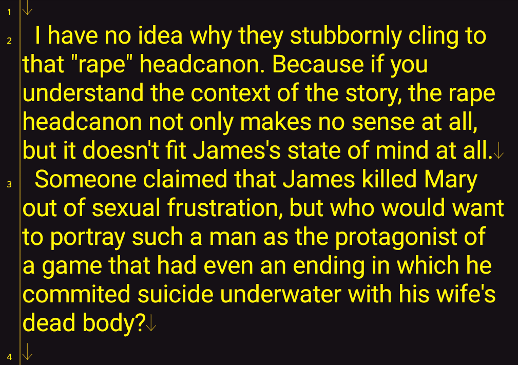 起因是伊藤畅达在社交媒体X上发了一张黑底黄字的图片,图片中写道:“我完全不明白他们为什么要顽固地坚持那个强奸的自设。因为如果你真正理解故事的背景,这种说法不仅完全说不通,而且与詹姆斯当时的心理状态根本不符。有人声称詹姆斯是因为性压抑而杀了玛丽,但谁会愿意把这样一个男人塑造成游戏的主角呢?更何况游戏甚至还有一个结局是他带着亡妻的遗体,在水底自杀。”
