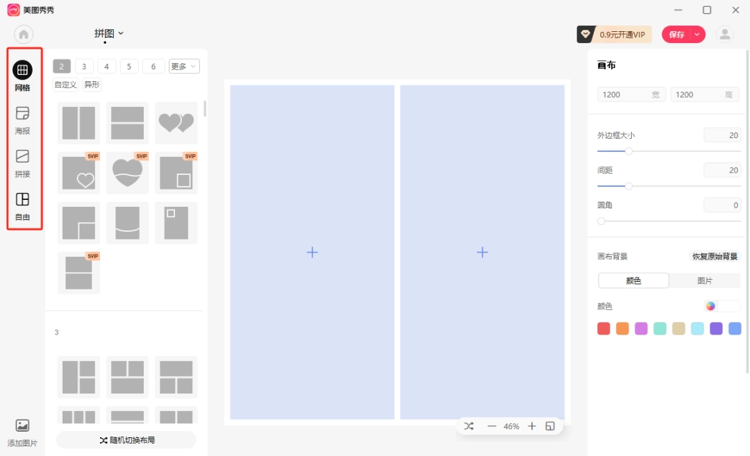 2.选择拼图模板:在拼图界面,你可以看到多种拼图模板,包括“自由拼图”、“经典拼图”和“杂志拼图”等。根据你的创意需求选择一个合适的模板。例如,选择“自由拼图”进行个性化布局,或选择“经典拼图”使用预设的模板。