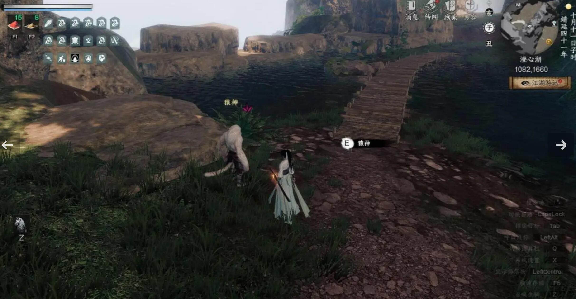 任务触发点在澄心湖坐标1082,1660。按M键打开大地图,左上角输入坐标点击定位,黄色标记点即为目标。到达后可见湖边圆形石台,猿神站在石台北侧,周围有三棵垂柳与荷叶漂浮的湖面,环境特征明显。无需前置条件或道具,到达即可触发。进入棋局后鼠标左键点击棋盘交叉点落子,右键取消选中,胜负遵循围棋围地规则。第一次对决猿神抢占左下角和右上角,建议控制右下角、第二次侧重中腹争夺,需保持棋子连接、第三次注意应对弃子战术,避免被分割包围。若棋艺不足,可通过“认输”操作积累棋艺值后再挑战。