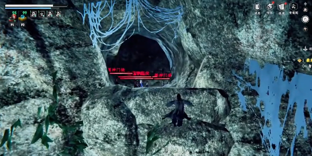 玩家可以通过定位的方法抵达莲花铁门的侧边位置,在这里就可以看到有一个比较明显的洞穴入口,而且通过镜头的特写还会直接标注入口的方向,方便玩家去识别。可以操控角色去使用技能,需要确保角色早就已经解锁基础的功能,避免因为能力不足而没有办法进入。然后可以从地面或者是铁门边上的平台来起飞,可以精准地飞入到洞穴的内部。一定要特别注重于落脚点,如此才能够有效避免不必要的掉落。
