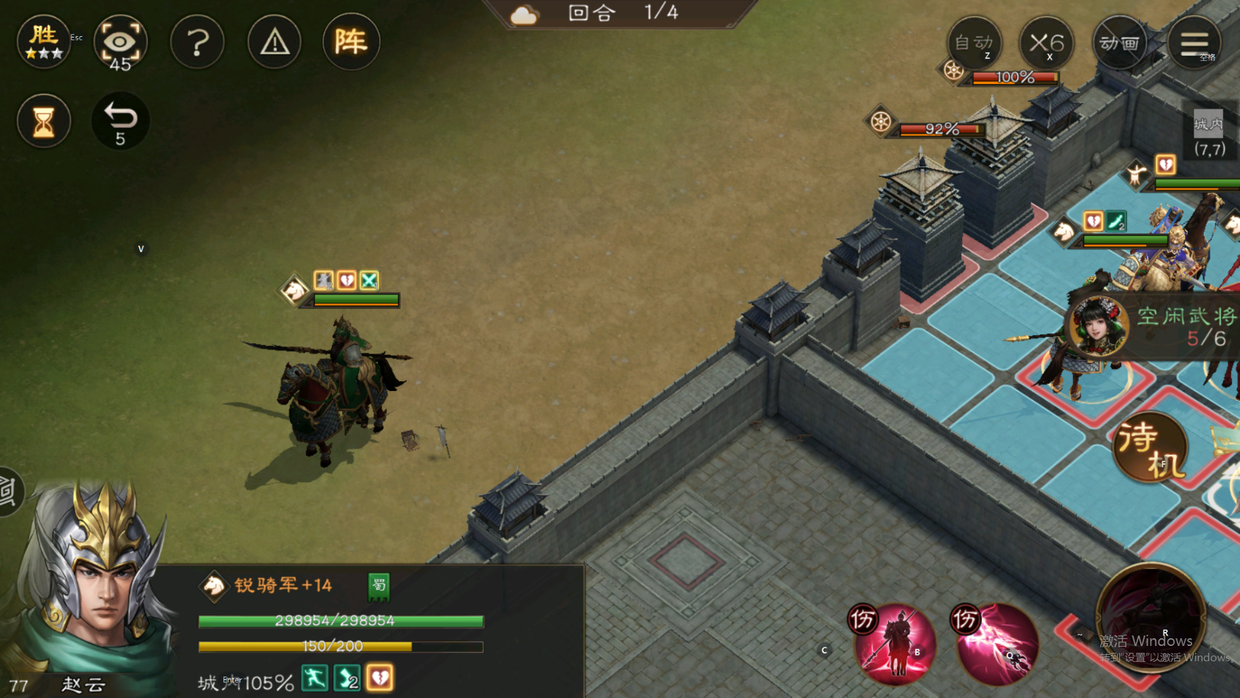 开局关羽用冲锋出去,二动跑下去离开箭塔的攻击范围,这样就完成了条件之一的:最少有一个人未受到伤害