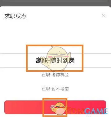 3、页面切换以后先选择目前的求职状态,接着点击保存即可。