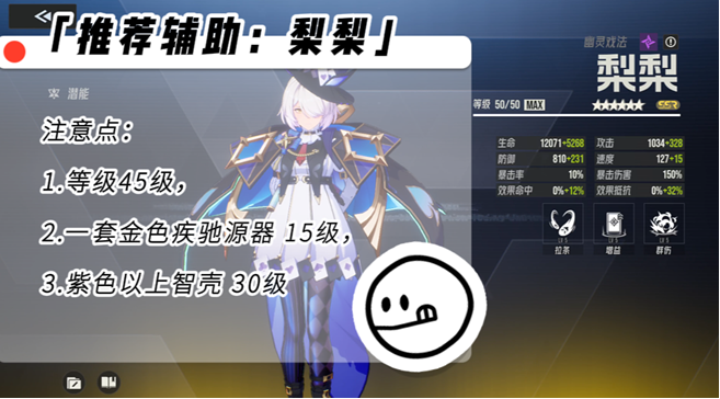 那么开始考虑配队,首先是我们的主要输出单位 谛听+自己的另一个光暗主C(或者你养的另一个主c),剩下两个辅助位置,这边推荐梨梨和蟒蛇/黛纳,或者还有一个多段攻击很多的 炀-异-水系(但是很少有人练)