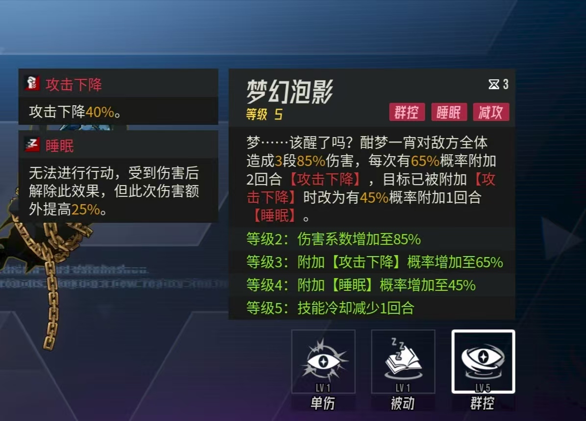 大招既可以降低敌方攻击又可以造成控制【睡眠】
