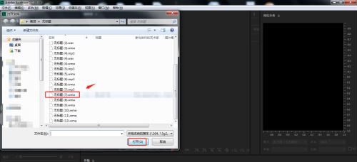 2、在弹出的导入文件窗口中,选择需要的音频素材,点击打开。