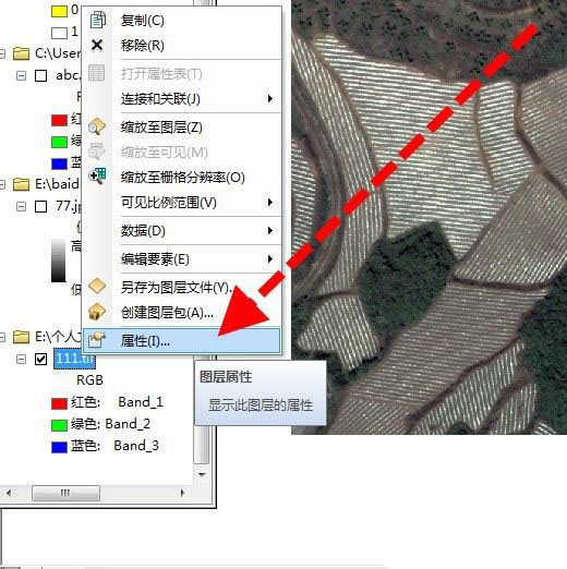 然后,鼠标右键点击影像的属性。