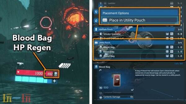 3、这样设置好,等你在游戏里受到伤害,血袋就会自动发挥作用,帮Sam恢复健康。