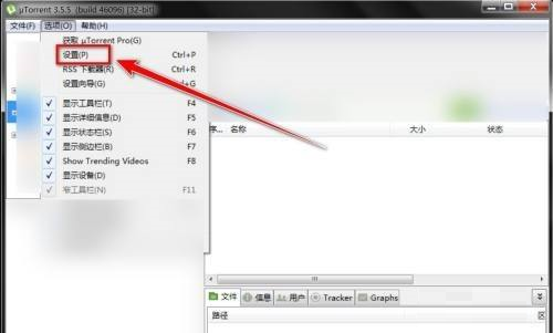第一步:在uTorrent窗口中,点击菜单栏上的“选项”(如图所示)。