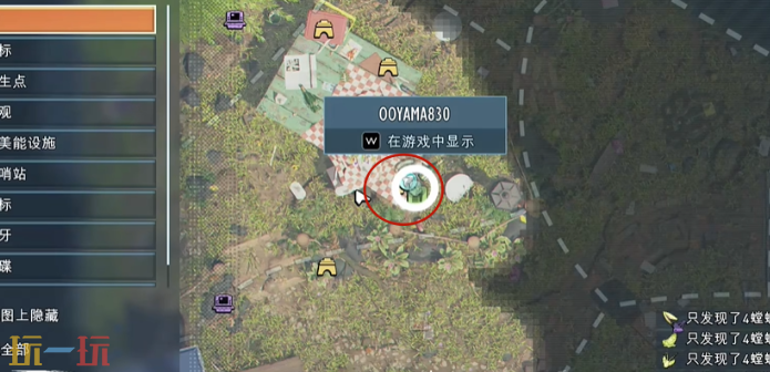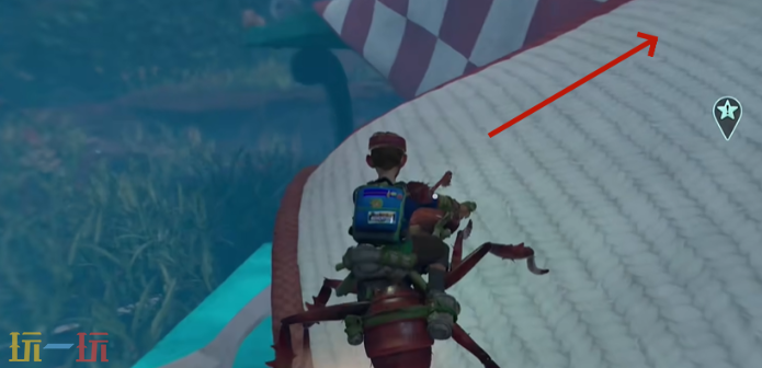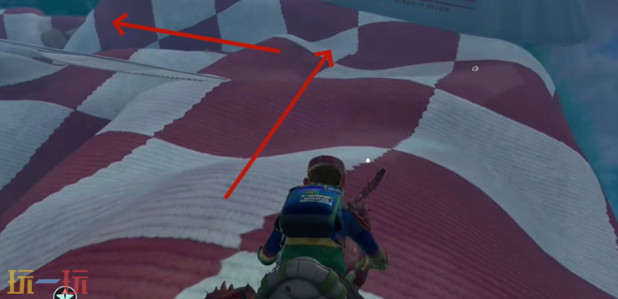 1、传送到野餐桌右下角,贴桌布一路向上直行,到尽头立刻左转。