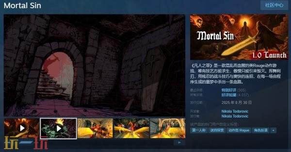 时间:2025-09-02 | 作者: | 阅读:0由Nikola Todorovic开发并发行的混乱血腥类Rouge动作游戏《凡人之罪》(Mortal Sin)现已在Steam推出1.0正式版,国区售价92.00元,首发享20%折扣优惠,仅需73.60元,时间截止9月13日。