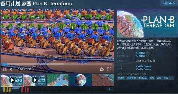 时间:2025-09-02 | 作者: | 阅读:0由Gaddy Games开发并发行的科幻模拟游戏《备用计划:家园》(Plan B: Terraform)现已在Steam推出1.0正式版,国区售价62.00元,首发享15%折扣优惠,仅需52.70元,时间截止9月6日。