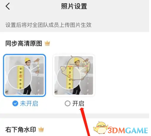 3、找到同步高清原图,点击开启即可设置自动同步原图到团队了。