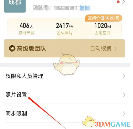 2、在管理界面,点击照片设置。