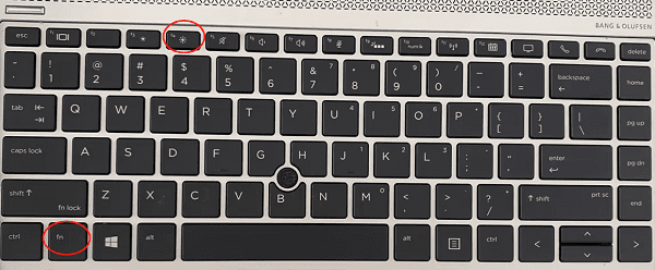 1、按住键盘上的 Fn 键,同时按下标有亮度增加和亮度降低的按键。