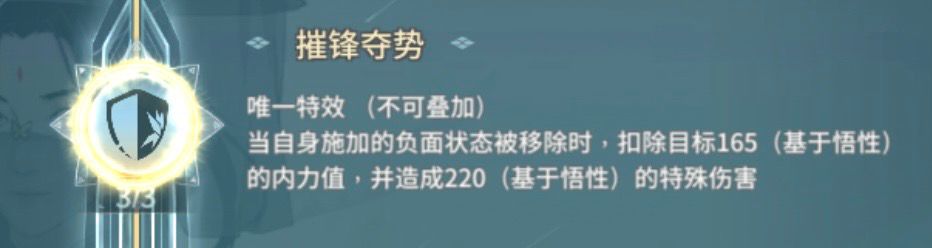 天赋第二条,每一点悟性增加一点盾量。且寒冰掌的麻痹转寒毒、云雪的凌寒转凛然等,均为先移除红色debuff,再施加紫色状态,同样可以触发该天赋加盾。
