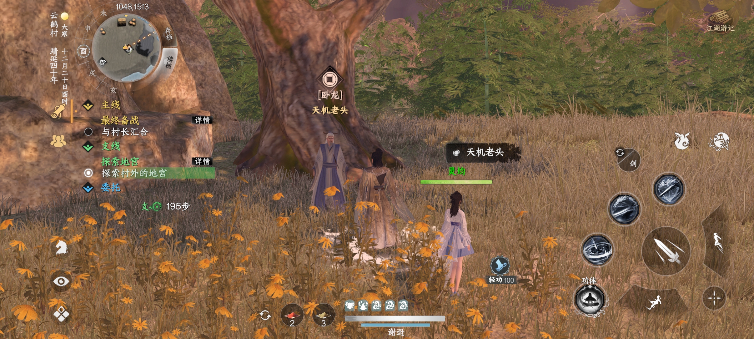 2、找天机老人卖掉(位置:1048,1513)(有钱了再来买他这里的所有轻功)