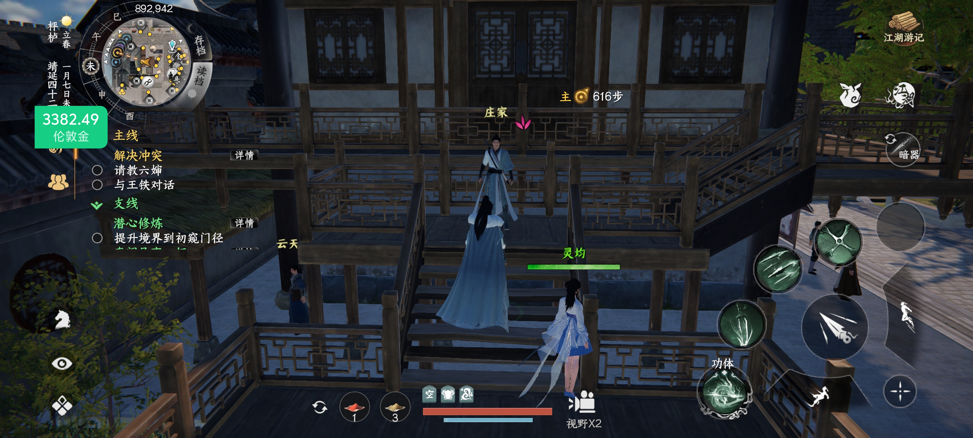5、找绝影楼密探(位置:904,908)地图上有很多个随便一个都可以买轻功最后4本