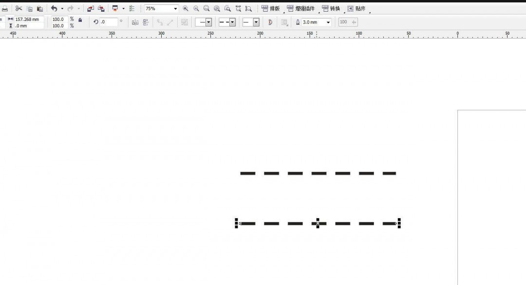 5、查看复制。点击确定,可以画出一个虚线的效果,复制一份备用。