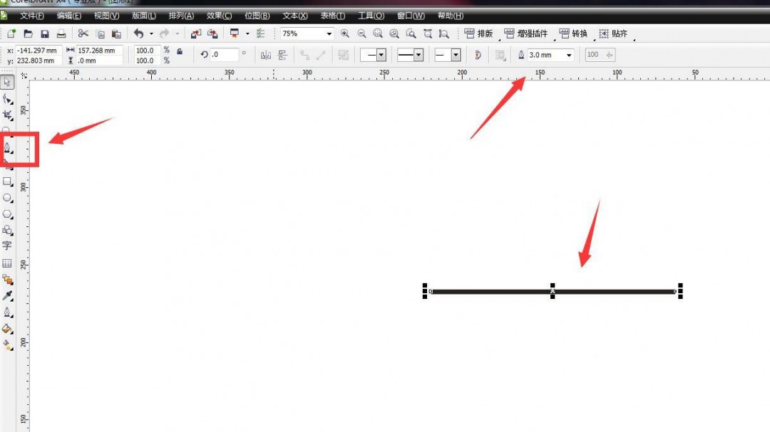 2、CTRL键画直线。选择手绘工具,点击一下,然后按住CTRL键拖动鼠标,就可以画一条直线了。