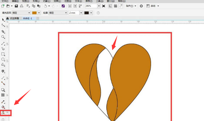 1.首先,在CDR软件中,点击左侧的基本形状工具,选择心形图案,绘制爱心