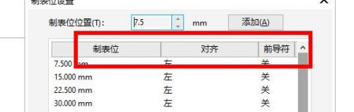 5、添加之后,即可在下列的项目中看到我们的制表位。