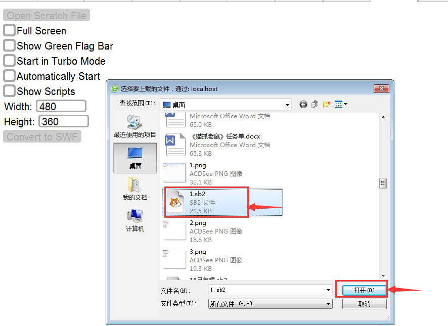 输入文件名,点保存,就可以自动将刚才选中的scratch文件转换成swf文件。