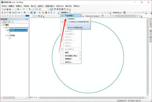 1、首先ArcGIS中随便创建一个圆面,并显示在图层中。