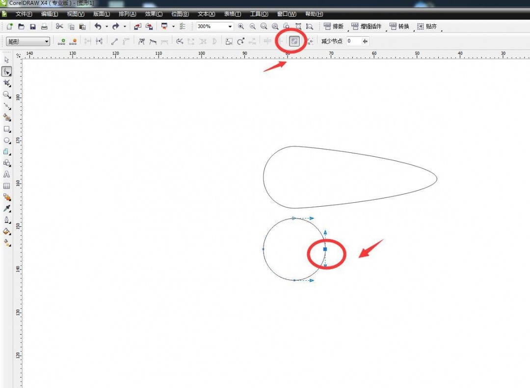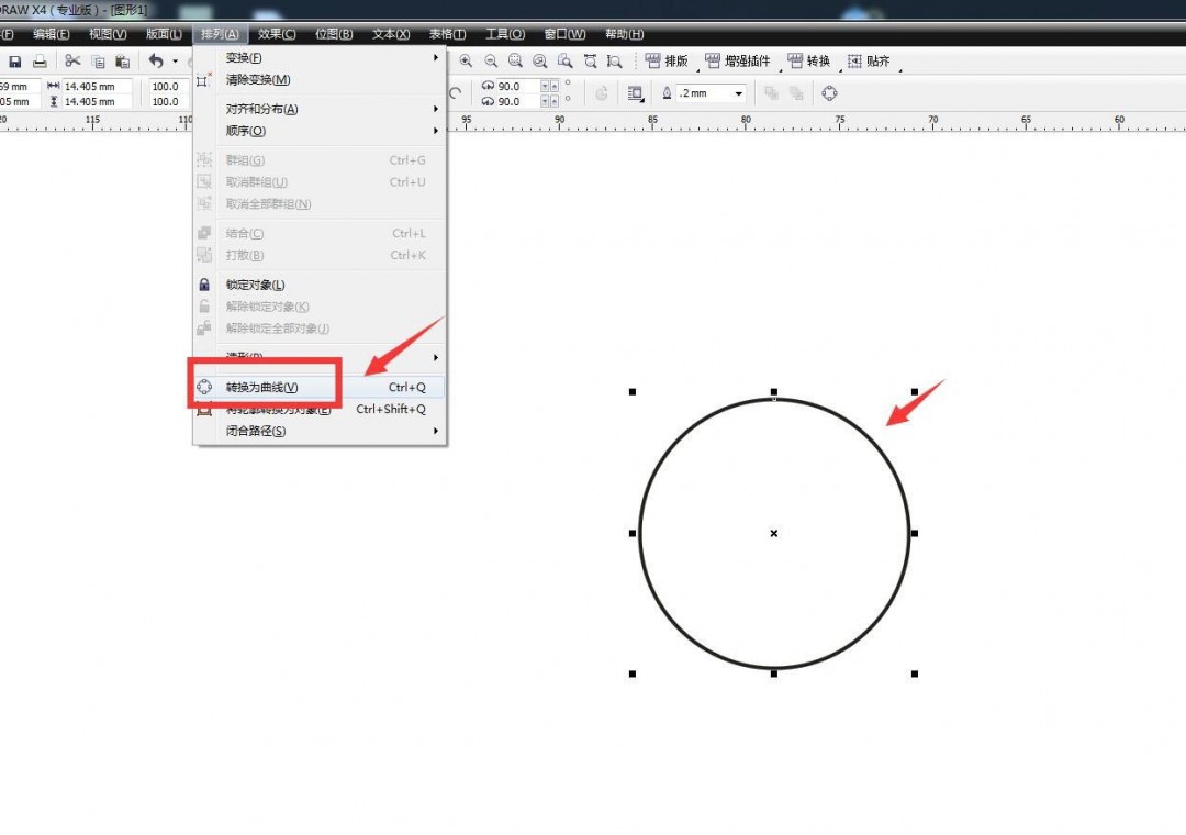 2.然后,选中圆形点击排列菜单中的转换为曲线按钮,并复制一份相同图形