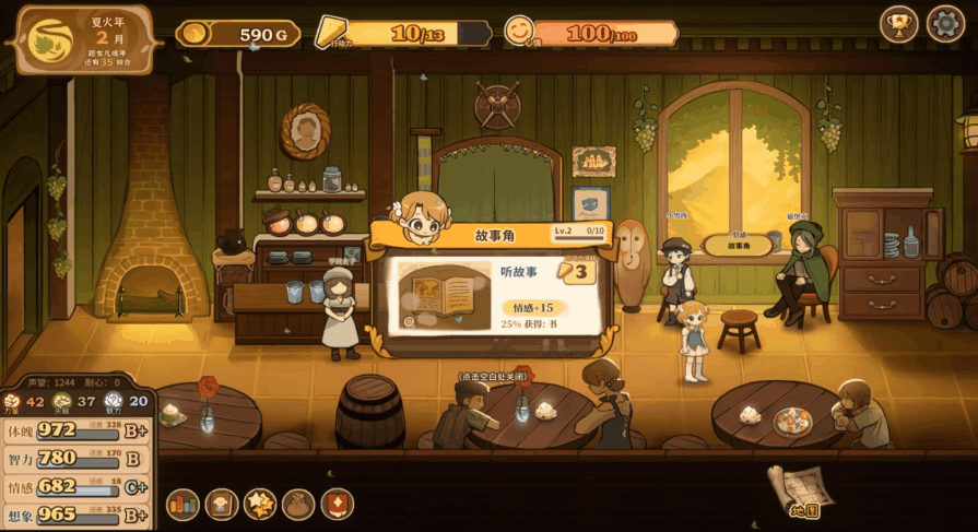 2 互动沟通:每回合处理来信、对话女儿,陪伴她学习赛马、烹饪等技能;
