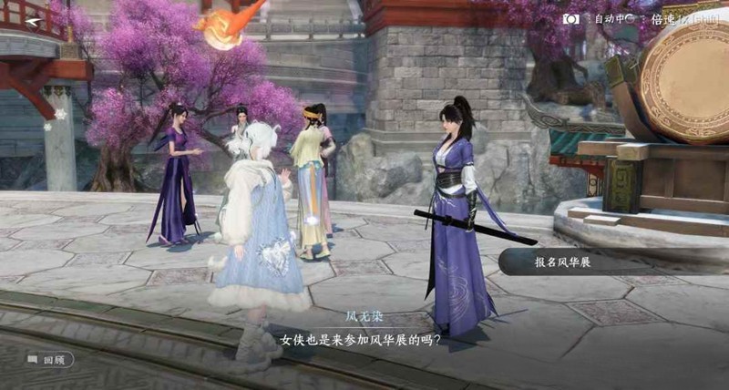 2.再次对话凤翩翩后前往汴京虹桥(汴京,1045,961)对话凤翩翩穿上凤城时装凤绣朝华使用时装技能染风弄潮切换为染色模式给路人染色,完成