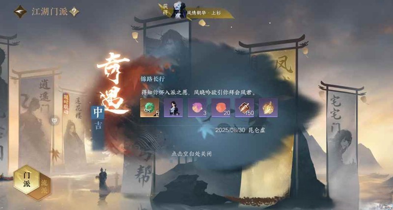 奖励:绑定纹玉、风云令、紫色内功提示:如果未触发奇遇,可尝试切线再次触发