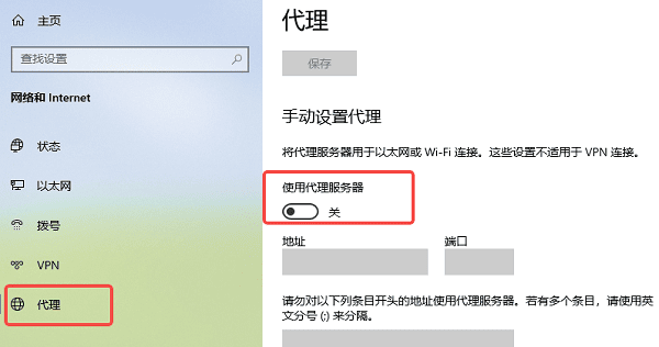 在Windows系统中,打开“设置”>“网络和Internet”>“代理”,确保“使用代理服务器”选项关闭。