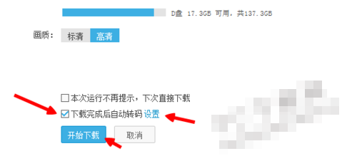 5.如果想要在视频下载好之后自动转码的话,我们可以随便找到一个视频点击到下载页面,在里面我们将下面的一个下载完成后自动转码选中,然后点击后面的设置,将格式设置好之后点击下载即可,下载完成之后自动开始转码任务。