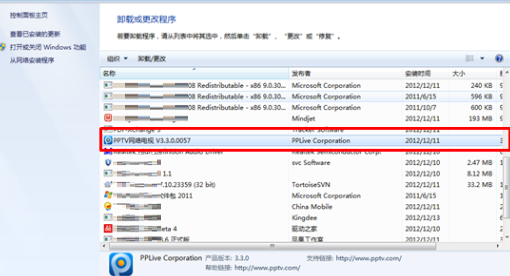 4) 选择希望删除的文件信息,点击“卸载”,即可把PPTV网络电视从您的电脑上删除
