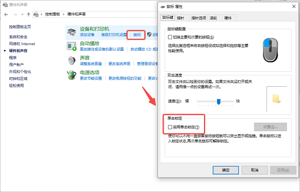 控制面板:进入控制面板,选择“硬件和声音”中的“鼠标”选项。在“鼠标键”选项卡中,确保左键功能未被禁用或调整。