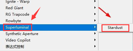 2.然后,在图层菜单中找到Superluminal栏目,添加Stardust星辰粒子插件