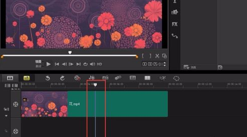 把轨道针放到要截开的位置,表示视频将从这里一分为二