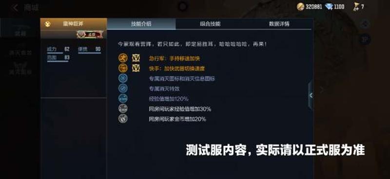 在局内测试我们可以看到,蛮神巨斧近距离攻击手部为97点、腿部为62点、头部伤害为194点、胸部为97点。