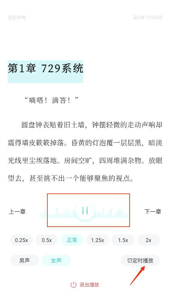 4、如图所示,即可开启听书体验了,还可以进行设置定时听书、播放速度等。