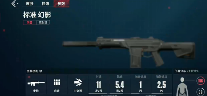 除了射速外,幻影的伤害表现也相当强劲。特别是在15米以内的近距离作战中,幻影的头部伤害能够达到156点,这几乎是可以直接击杀敌人一击必杀的程度。即便敌人不是被打中头部,身体部分的伤害也高达39点,足以对敌人造成极大的威胁。而如果击中敌人的腿部,虽然伤害降至33点,但依旧能够为玩家提供不错的输出效果,尤其是在敌人被压制的情况下,任何额外的伤害都能帮助你快速建立战斗优势。