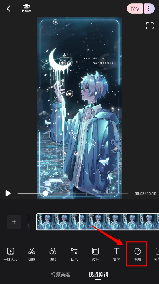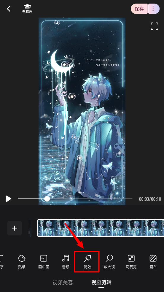 3、如图所示,滑动并选择点击"特效",即可添加特效效果。