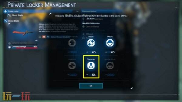 3、抢救后可得到一大块化学品、树脂和金属。这些物品组合起来不会太重,方便玩家携带。