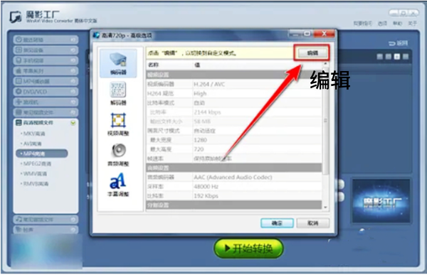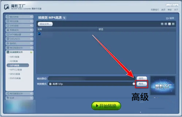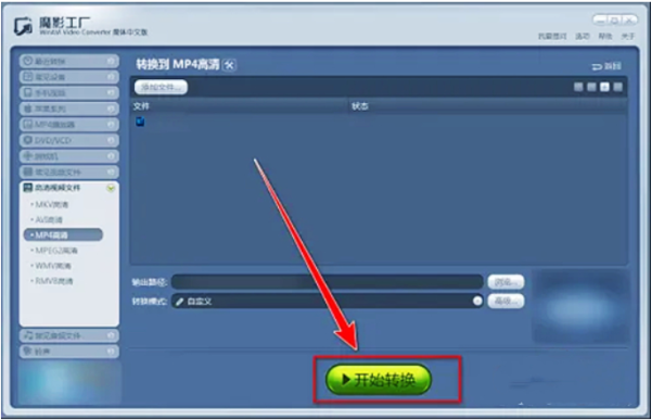 1、启动魔影工厂,进入视频转换界面,点击左侧菜单中的“高清mp4”。