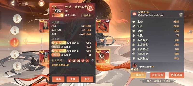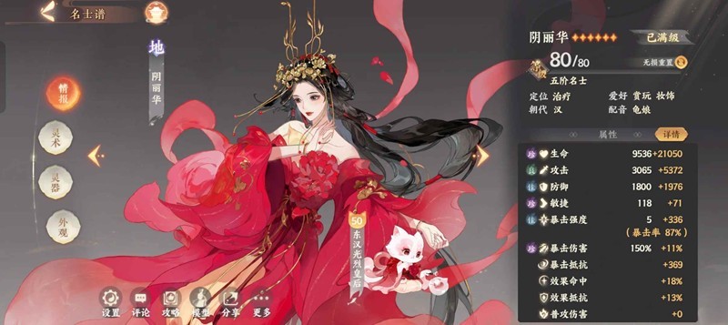 图示装备为偏坐地秀华搭配(因为没有洗出高速归云),刘秀装备为踏破离火均可,九世灵黑曜,猫一技能四攻一敏猫。阴丽华装备为爆抗承佑,九世灵赤金(减爆),猫一技能四生命一敏猫。