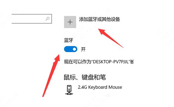 1、在电脑上开启蓝牙功能,你可以在“设置”中找到“设备”,在“蓝牙和其他设备”中滑动开启蓝牙即可。(有些台式电脑如果没有这个选项,则需要搭配蓝牙适配器才能连接)