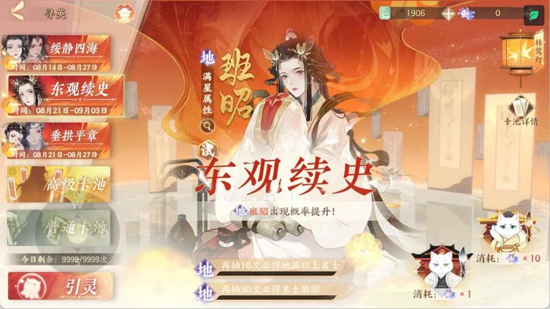 主力:白居易(重蕴承佑套)、邓绥(20级未重蕴茂和套)、班昭(仅重蕴一些防御输出词条的姑射套)、黄道婆(部分重蕴团棉套)