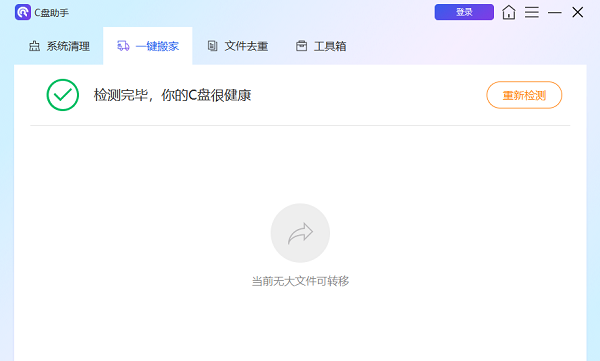 安装完成后,打开百贝C盘助手,在主界面中,找到“一键搬家”选项并点击。